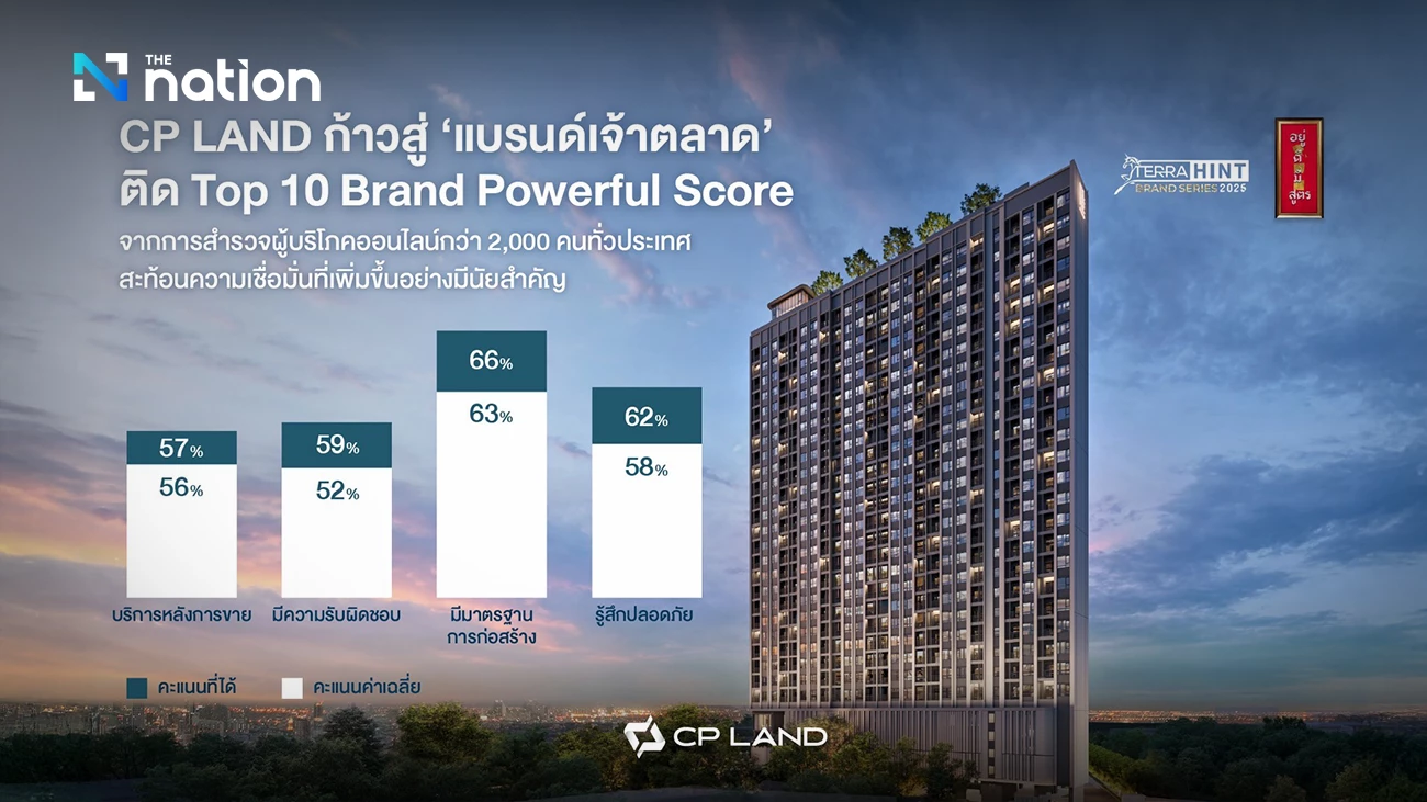 泰国领先房地产开发商CP LAND在2025年TerraHint品牌系列报告中,品牌实力评分跻身前十,并从“挑战者品牌”跃升为“市场领导品牌”。这一排名变化表明其住宅项目与消费者需求产生更强共鸣。