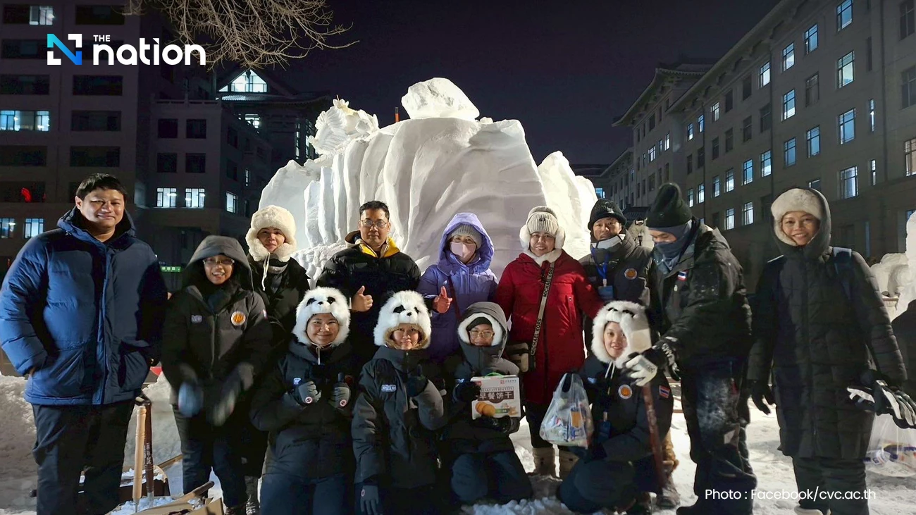 在2026年第18届哈尔滨国际大学生雪雕竞赛(ICSSC 2026)中,泰国清莱职业学院与素瓦巴职业学院联合组队的泰国职业学院学生,凭借以泰国斗鱼和”生命女神·水之赐予者”为主题的雪雕作品,荣获比赛一等奖。参赛团队名为”Fighting Frost TH”,由两所学院美术专业(职业证书水平)三年级学生组成,在零下严寒环境中完成了创作。