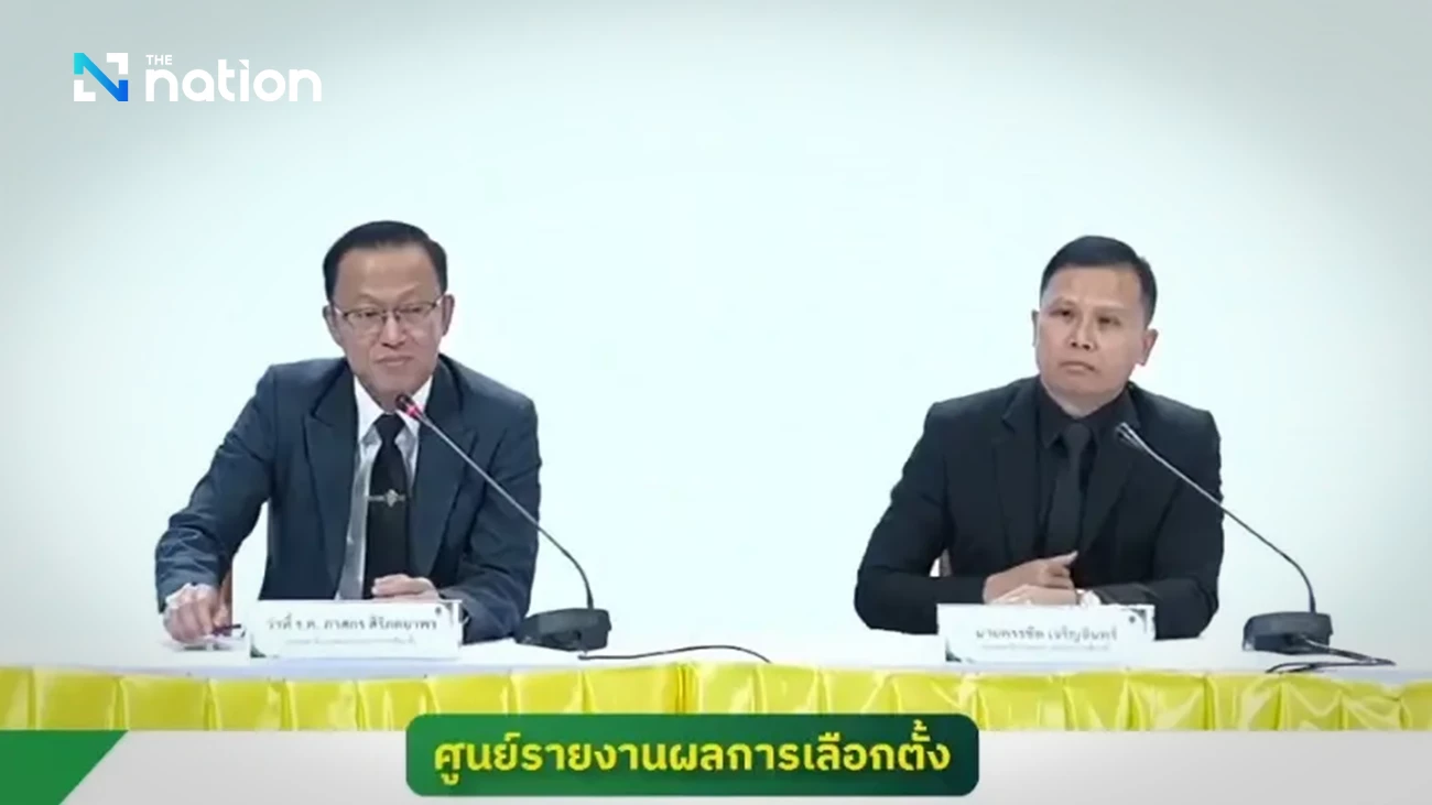 2026年2月10日14时,泰国选举委员会(EC)办公室召开新闻发布会。代理上尉帕萨孔·西里帕亚蓬(Phasakorn Siriphakyaporn)和副秘书长卡拉吉特·查荣因(Kharachit Charoen-in)就众议院选举和公投相关投诉向媒体进行说明。