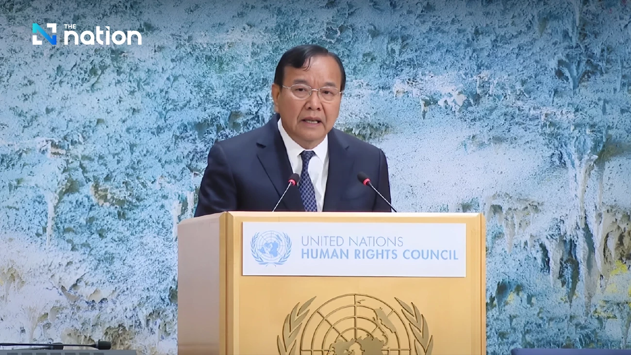 2026年2月25日,瑞士日内瓦,柬埔寨副总理兼外交与国际合作部长普拉克·苏坤在联合国人权理事会第61届会议上发表讲话。他指出当前武装冲突、对抗性局势和地缘政治分裂对人权状况构成严重威胁,强调平民是政治军事冲突的主要受害者,和平是人权发展的前提,安全是发展的基础。