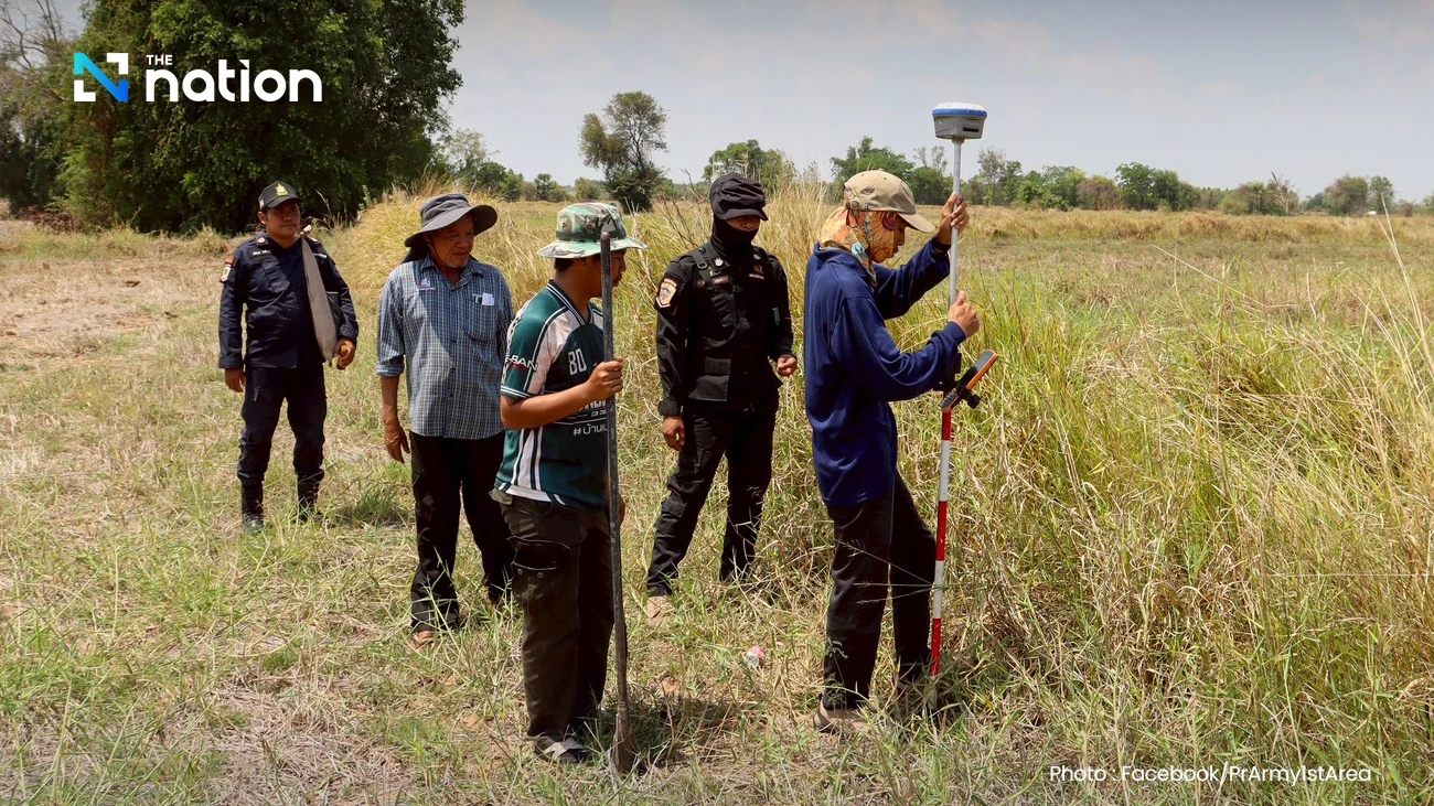 泰国东部任务部队于 3 月 18 日(周三)指派第 12 任务分队,派遣搜救与安全小组,协助皇家森林部及土地测量局官员,在沙缴府科松县农赞村斯里芬路附近对三处居民农田展开勘测,涉及面积 11.2 公顷。该区域位于边境地带,需实施严密安全监控。